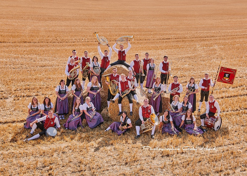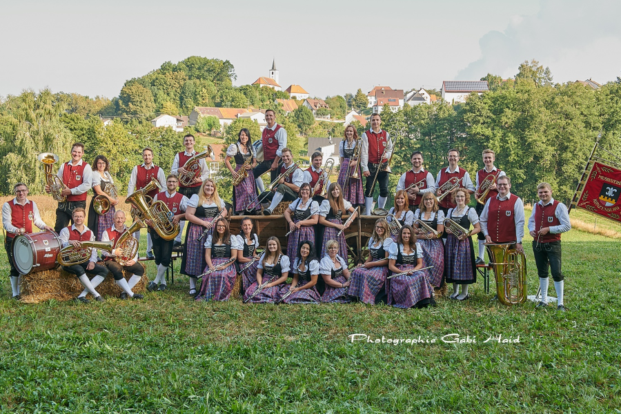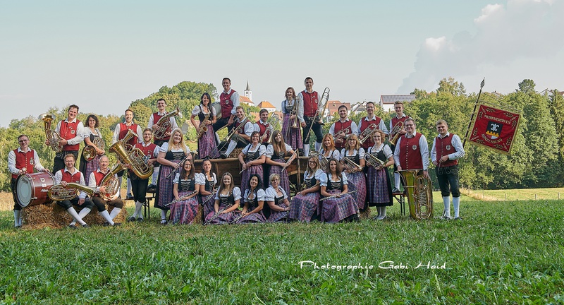 stehend v.l.: Thomas Schuster, Daniel Billich, Stefanie Klein, Michael Kowald, Christoph Tausend, Bettina Offner, Sonja Feistle, Thomas Hartmann, Robert Hins, Kristina Kränzle, Andreas Schuster, Julia Spitzer, Verena Gutknecht, Christian Schneider, Carolin Schneider, Stefan Hirner, Katrin Billich, Julian Kiffe, Laura Wöllert, Tizian Foag, Peter Tausend (Vorstand), Christoph Hins (Dirigent)